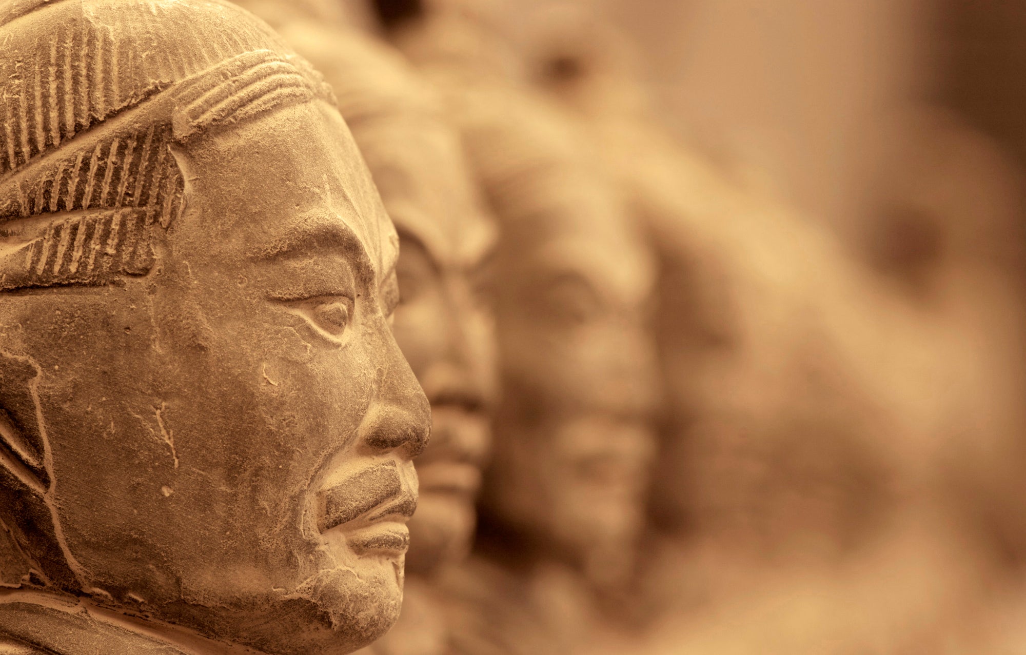 Die mehr als 7.000 lebensgroßen Soldaten, aus Ton geformt, kunstvoll bemalt und mit gebrauchstüchtigen Schwertern, Armbrüsten und Hellebarden bewaffnet, sollten Qin Shihuangdi, dem ersten chinesischen Kaiser, im Jenseits dienen. An den Arbeiten zur Errichtung der monumentalen Grabanlage waren rund 700.000 (Zwangs-) Arbeiter aus allen Teilen des Reiches beteiligt. Qin Shihuangdi wurde 210 v. Chr. beigesetzt – der Grabhügel, in dem seine Überreste vermutet werden, ist bis heute nicht geöffnet worden. Tatsächlich wurde bislang erst ein Teil der riesigen Anlage freigelegt und wissenschaftlich untersucht: Das ganze Areal misst gut 56 Quadratkilometer, auf denen sich neben den Gruben der Terrakotta-Armee weitere Gräberfelder und Gebäuderuinen befinden.